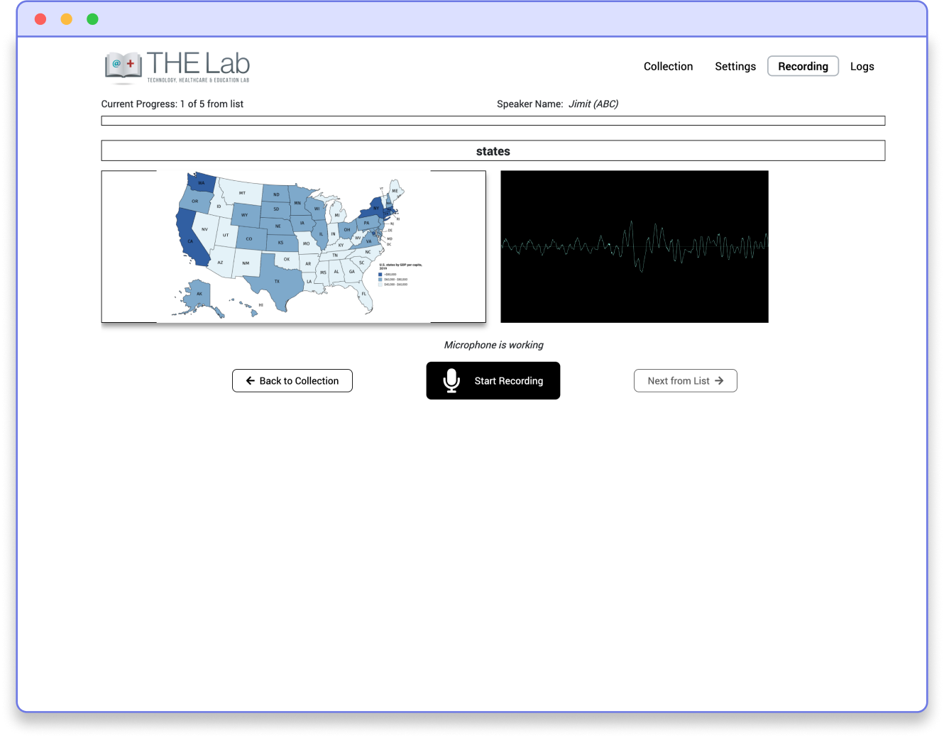 - It generates a set of audio/video (AV) files consisting of the speaker recording the words.