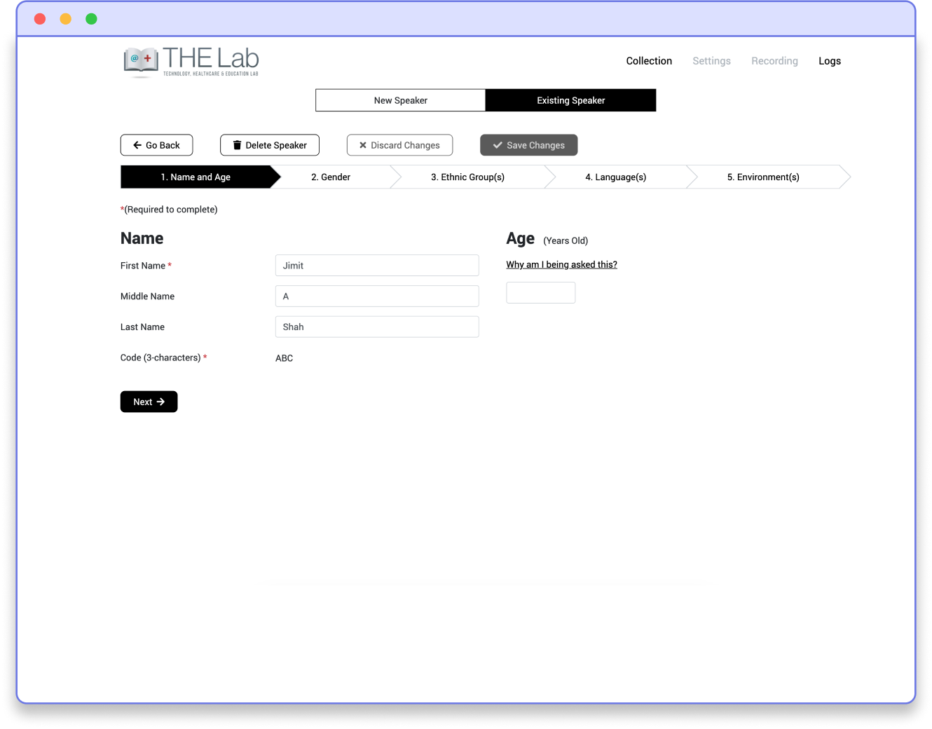 In OSP Stimulus Acquisition App (OSAP), a person has a computer with a microphone and webcam on for recording audio/video stimuli. When he starts the OSAP, he has to “log in” (no password required). He will have to select or log in to a saved profile or create a new one.