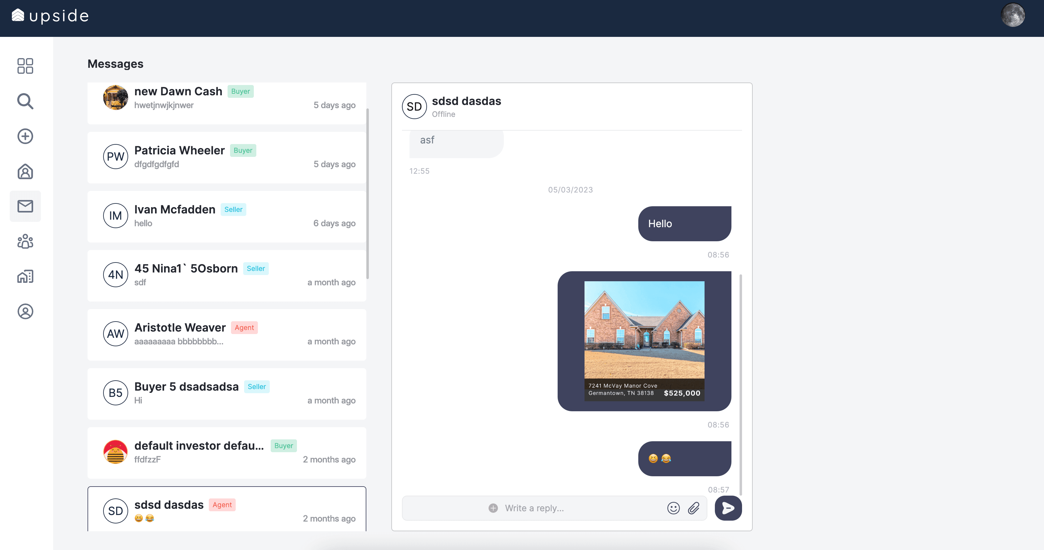 With built-in messaging, Upside makes it easy to connect and get the deal done faster.