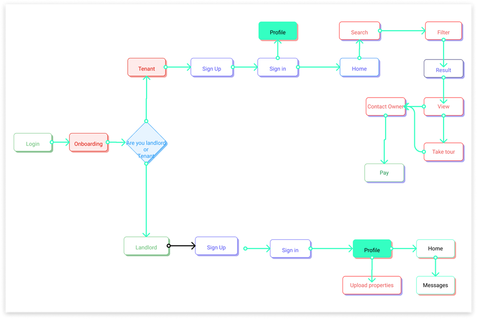We concluded that the targeted demographics are students, youth, and most adults who are looking for accommodation - to sell or rent or buy for various needs. On that basis, we prepared the user flow of the platform keeping in mind the two main objectives -: